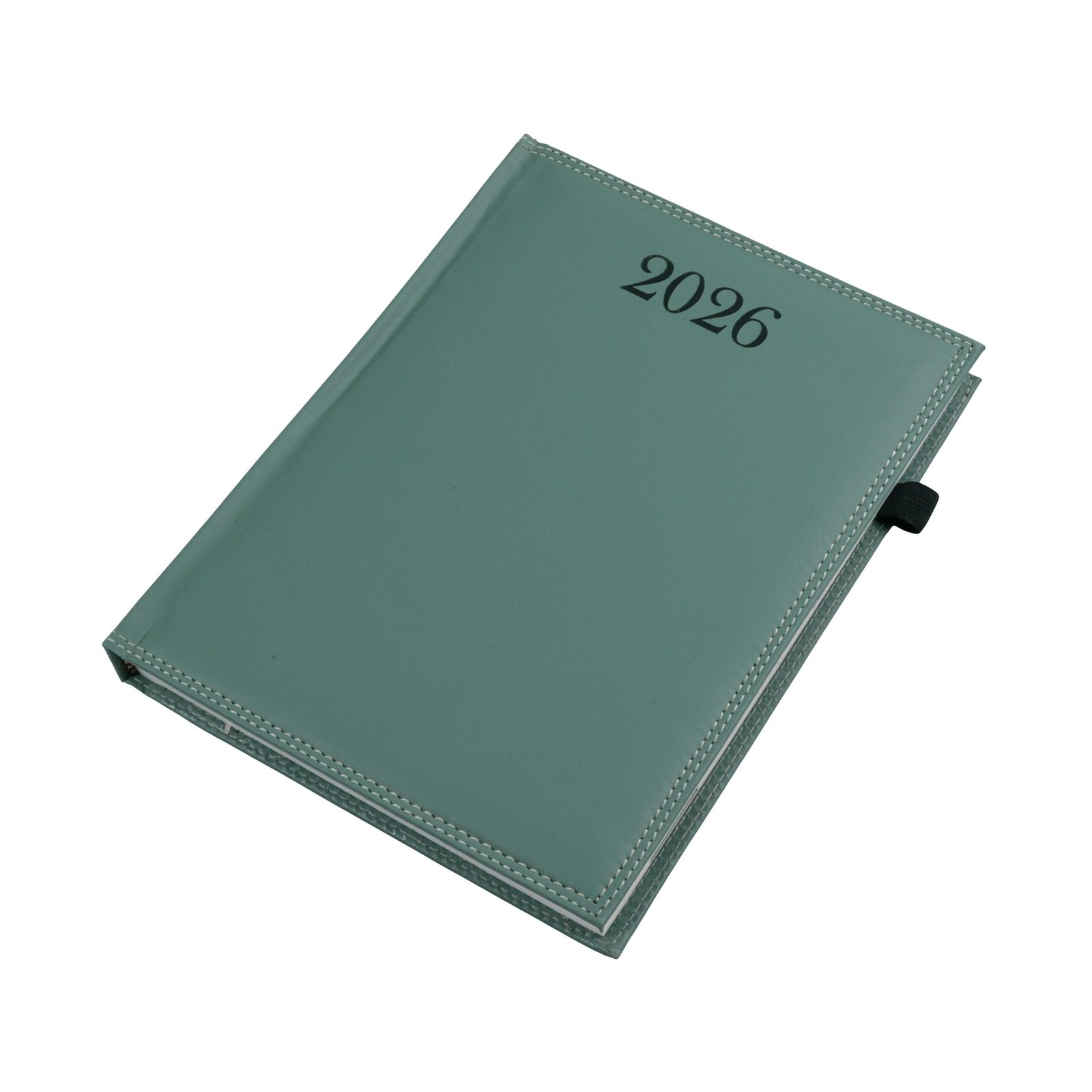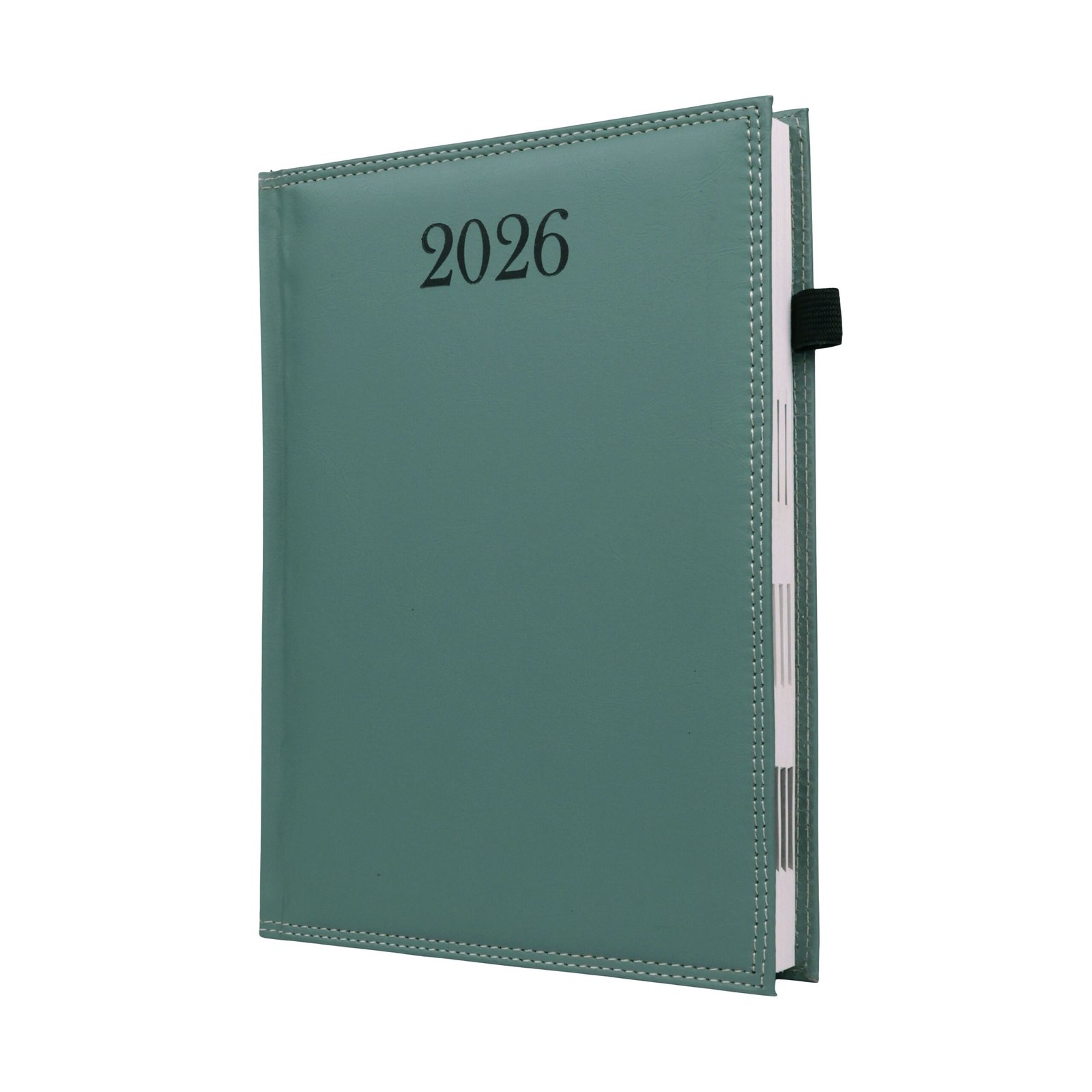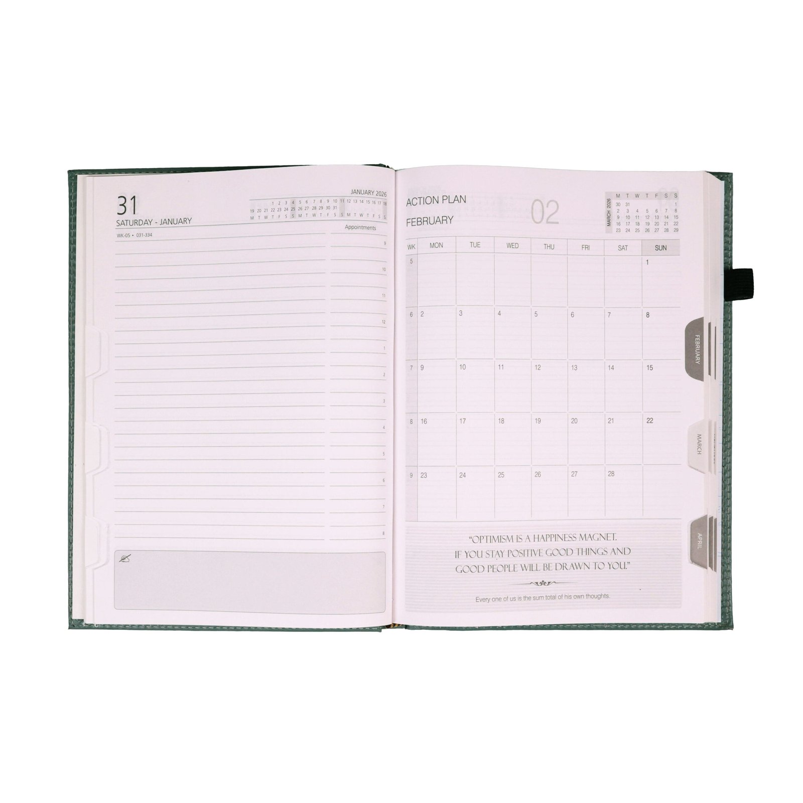 Stay organized with this Vision log B5 diary offering one date a page with planner and month tabbing. Its imitation leather cover is padded on one side, finished with elegant double stitching, and includes a practical pen holder for easy access. The subtle leaf foiling effect adds a luxurious feel. Ideal for professionals who want functionality and style in one. A great gift choice for colleagues, employees, or clients. Available in 3 sophisticated colors.